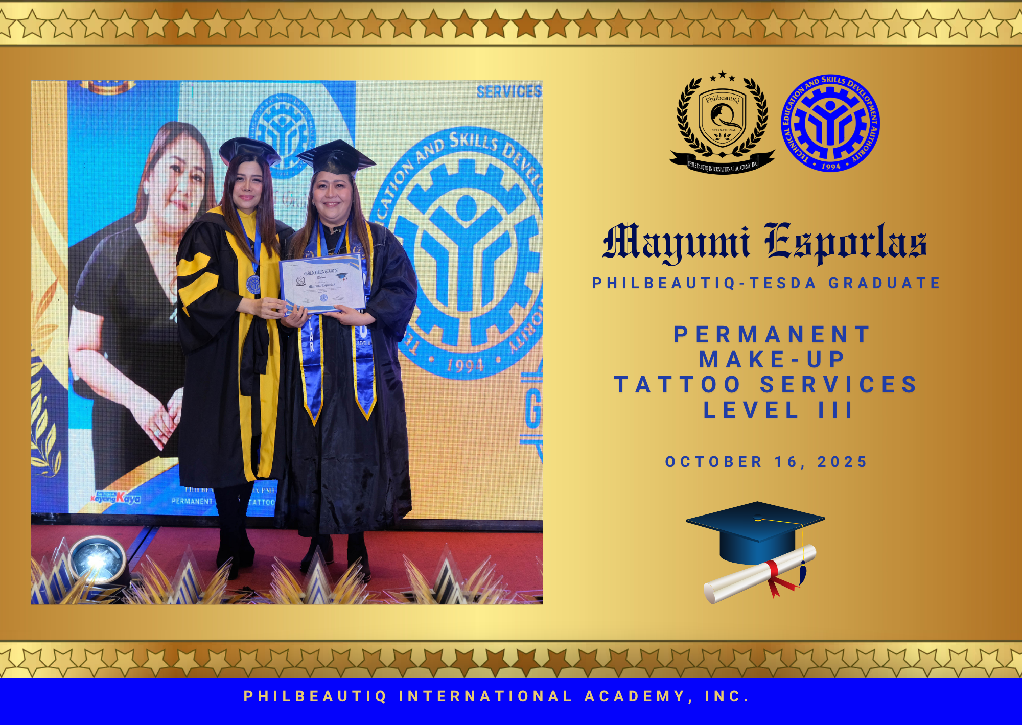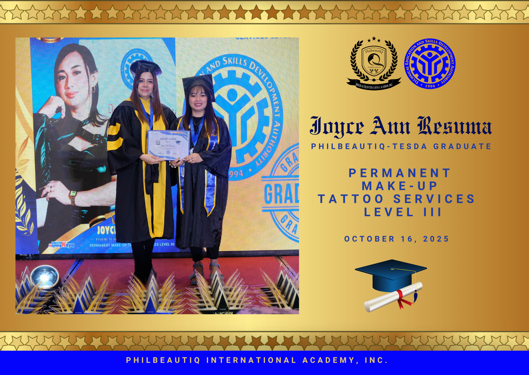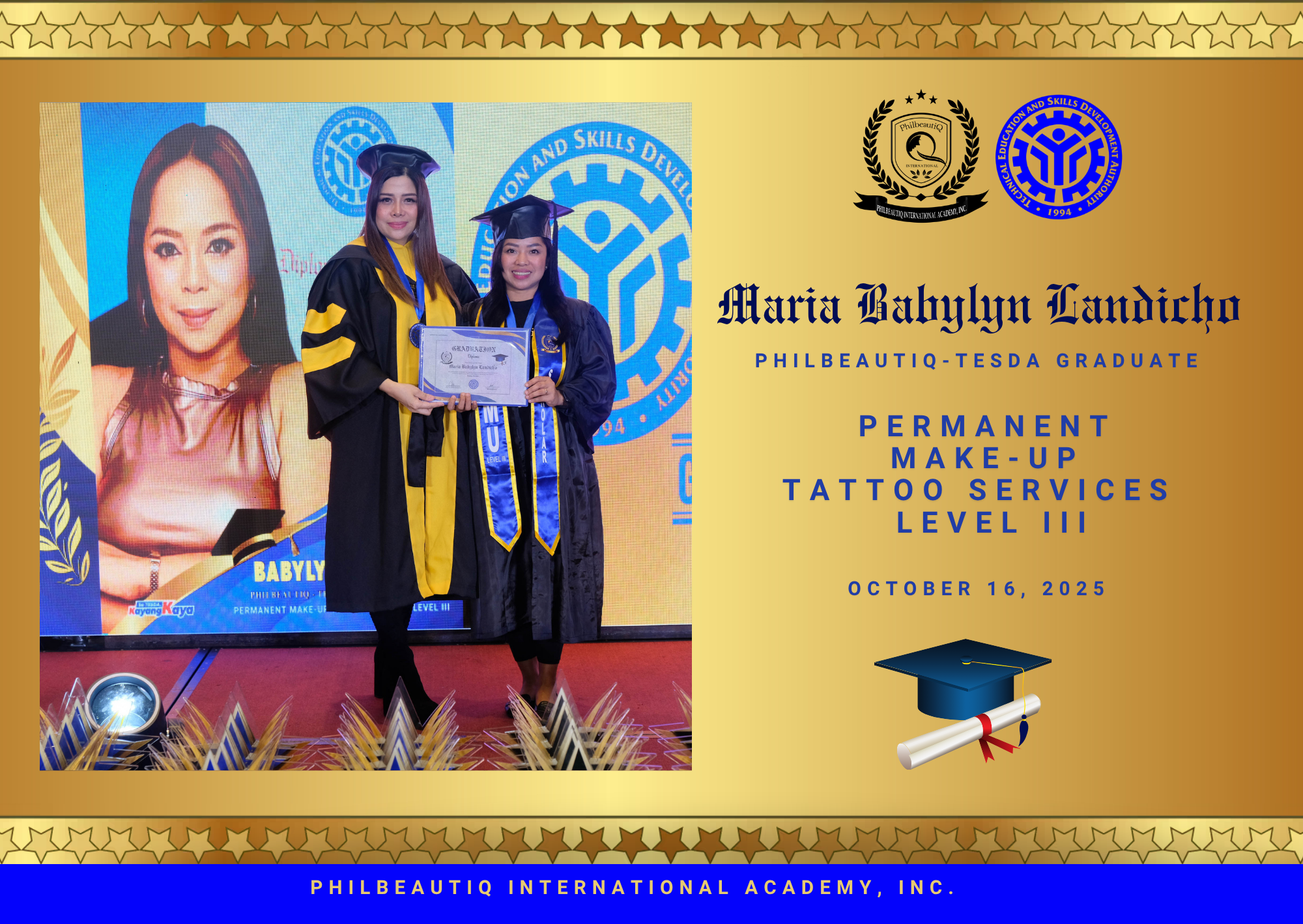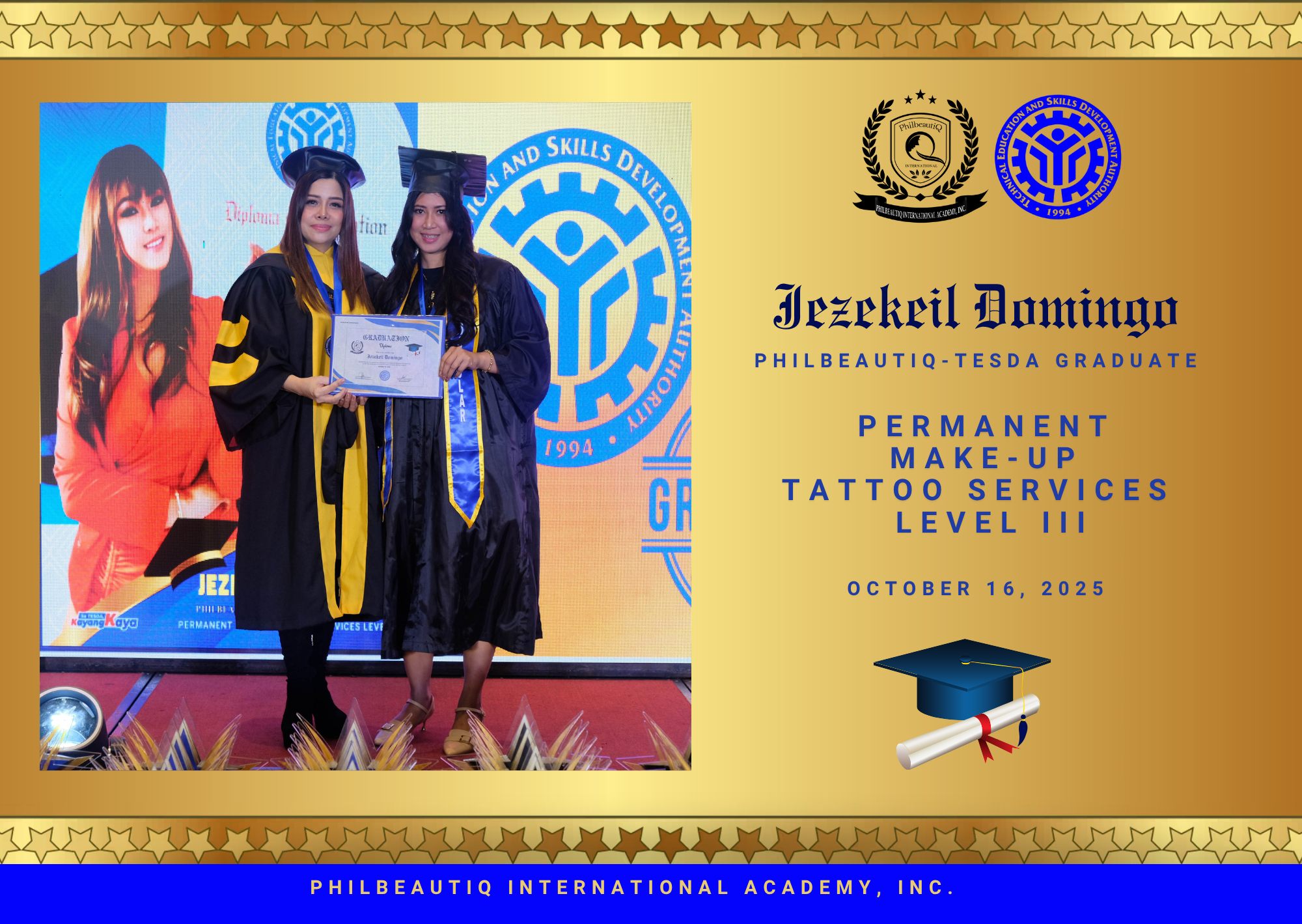 The first-ever graduates of the π·ππππππππππΈβπ»π¬πΊπ«π¨ π·ππππππππ π΄πππ-ππ π»πππππ πΊπππππππ π³ππππ π°π°π° have finally received their diplomas during the Commencement Exercises held last October 16, 2025, alongside the 1st PhilbeautiQ Icon Competition and Masterclass.